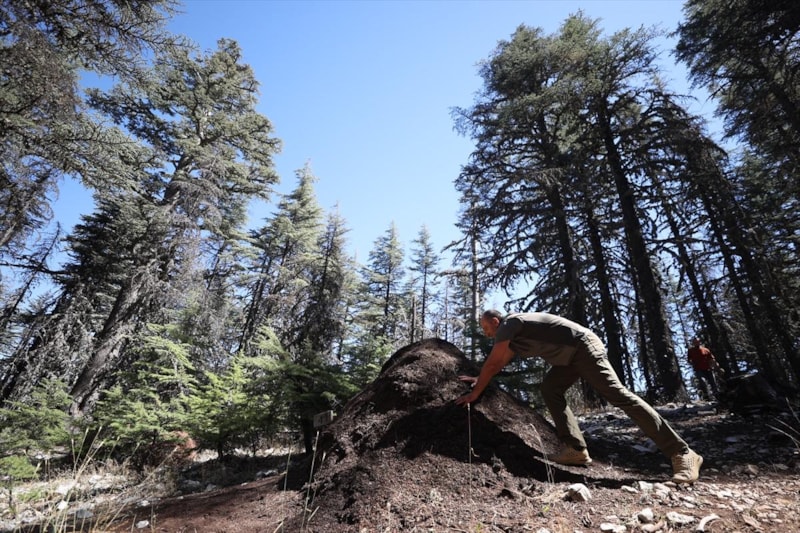 Karıncalar, sedir yaprak kelebeği ve sedir kabuk böceği gibi zararlılarla besleniyor. Bu sayede orman sağlığını ve biyolojik çeşitliliği koruyorlar. Bölgede yaptığımız incelemelerde 302 yuva tespit ettik. Her bir yuvada ortalama 350 bin ila 400 bin işçi karınca bulunuyor.