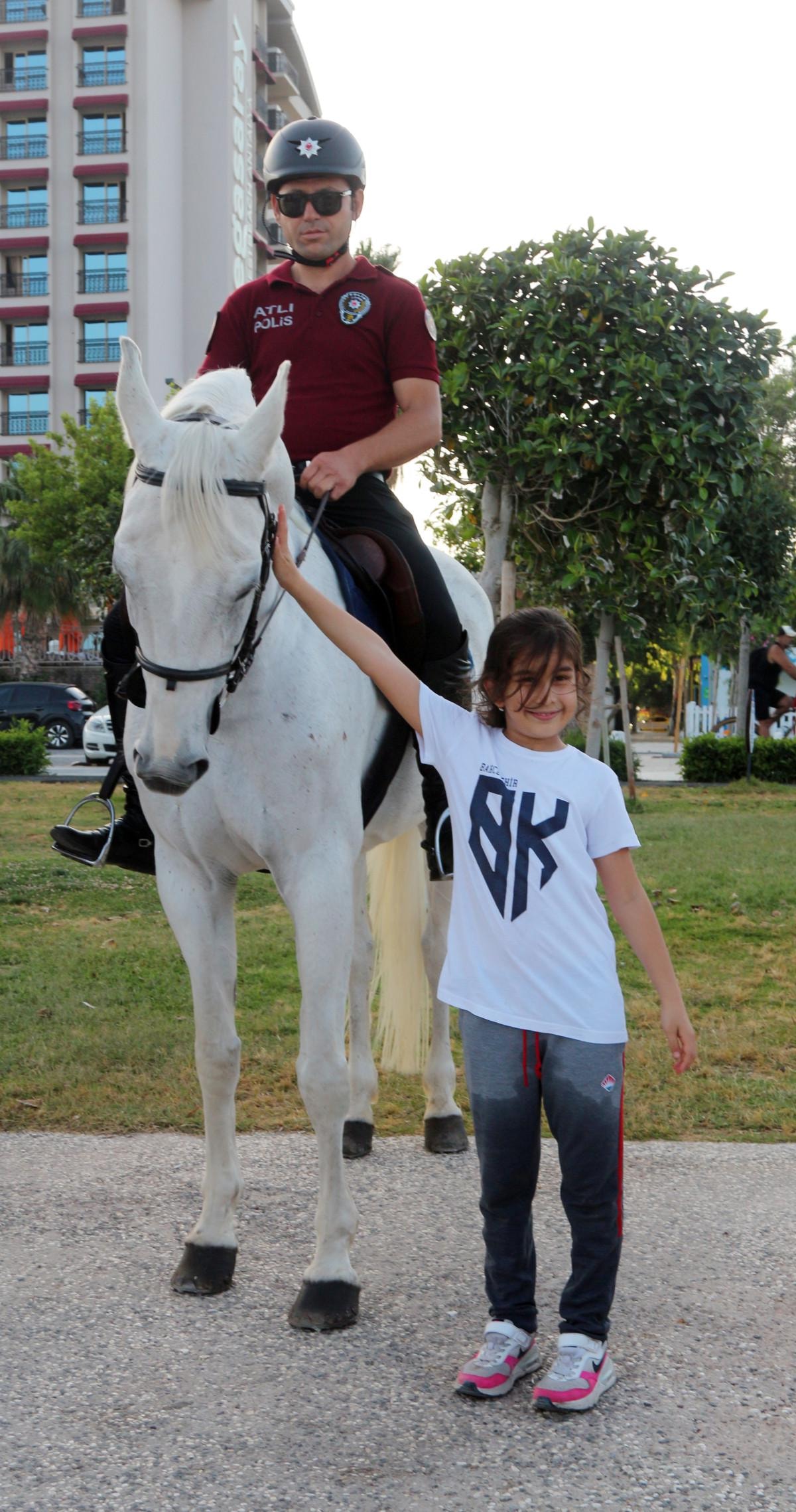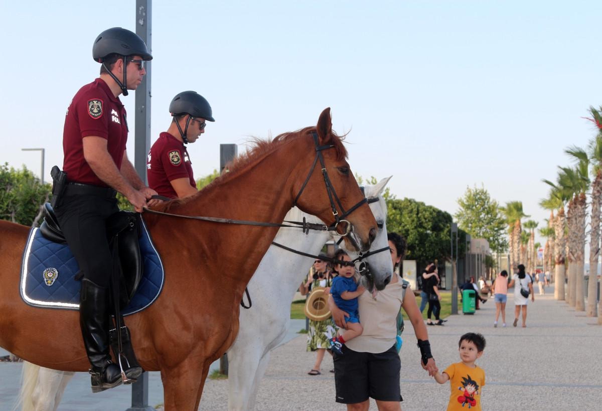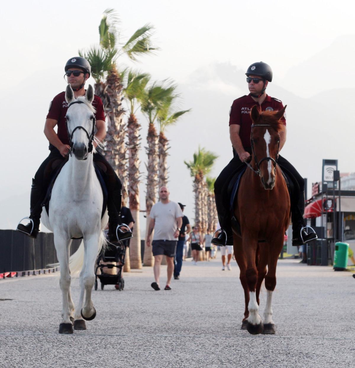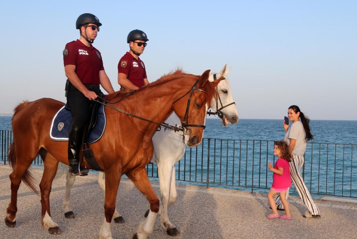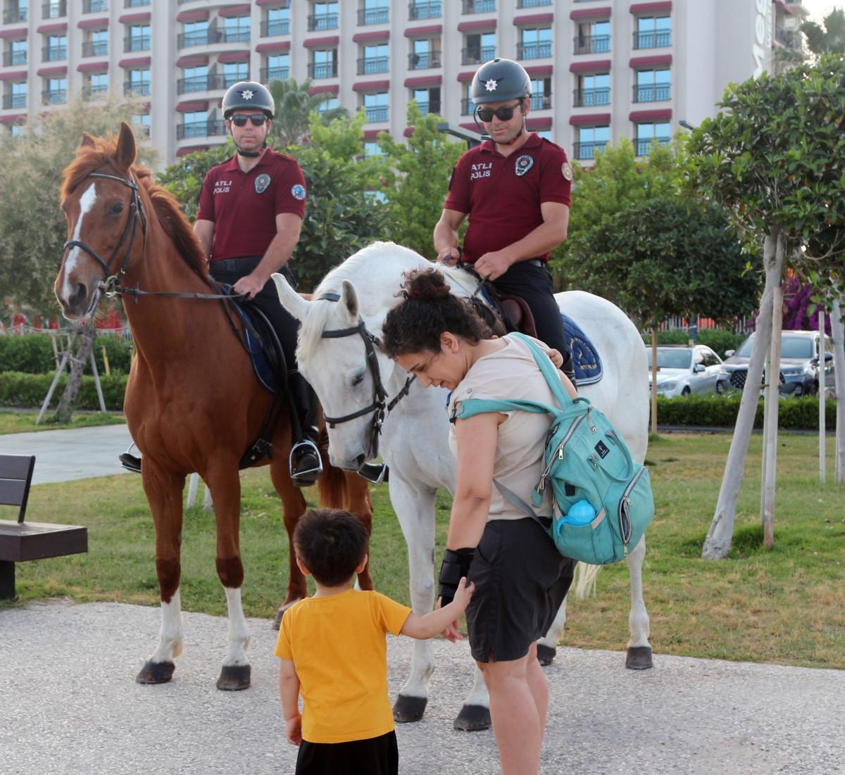 Özellikle Konyaaltı Sahili'nde görev yapıp, asayiş olaylarına müdahale eden atlı polisler, vatandaşların yoğun ilgisiyle karşılaşıyor.