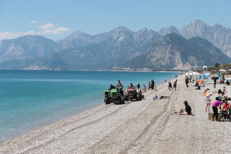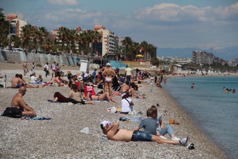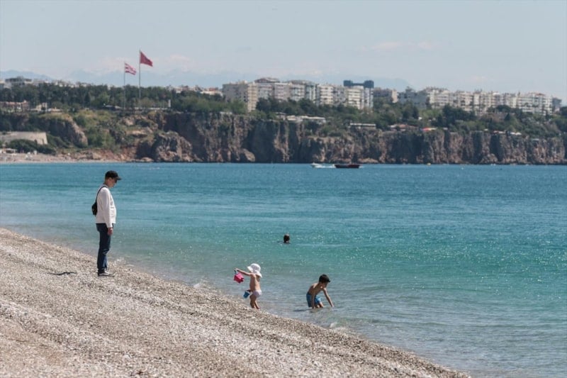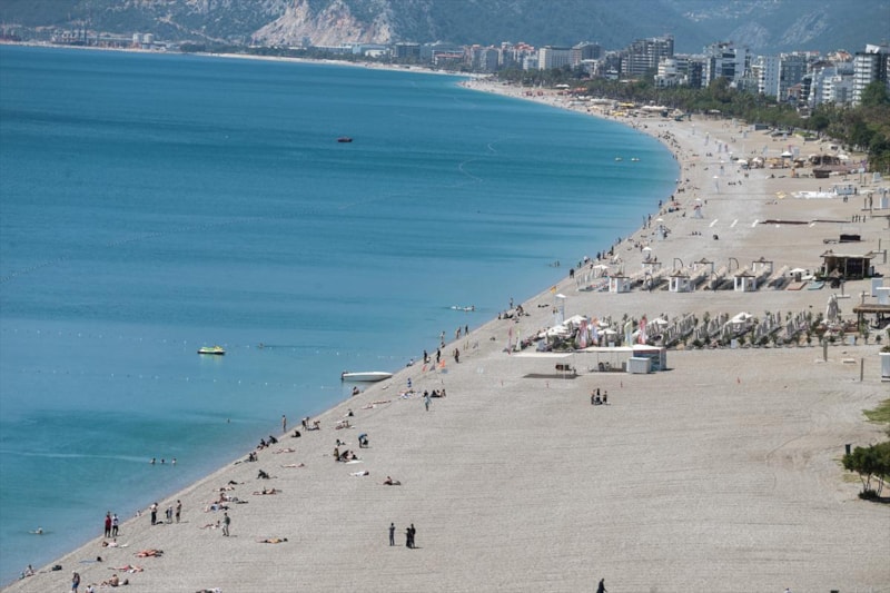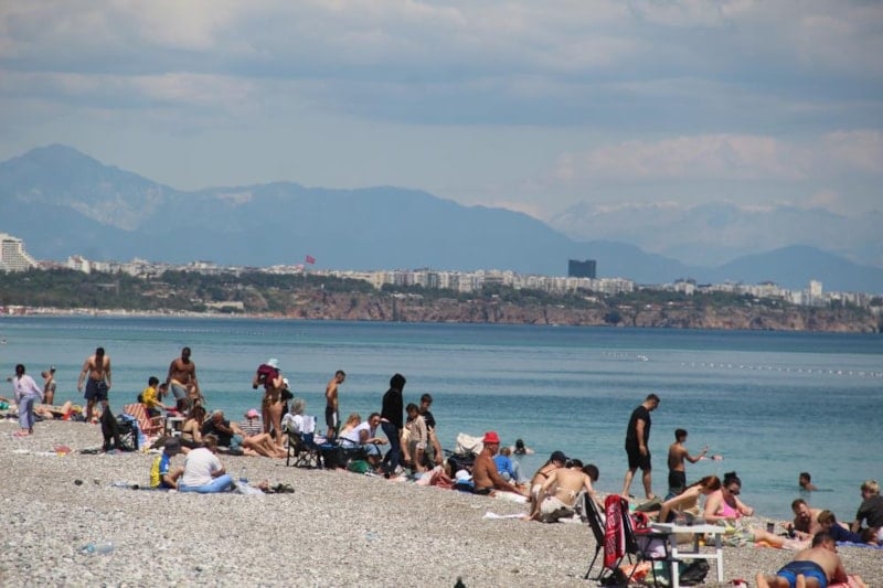 Sıcak havayı fırsat bilenler Konyaaltı Sahili'nde yoğunluk oluşturdu.