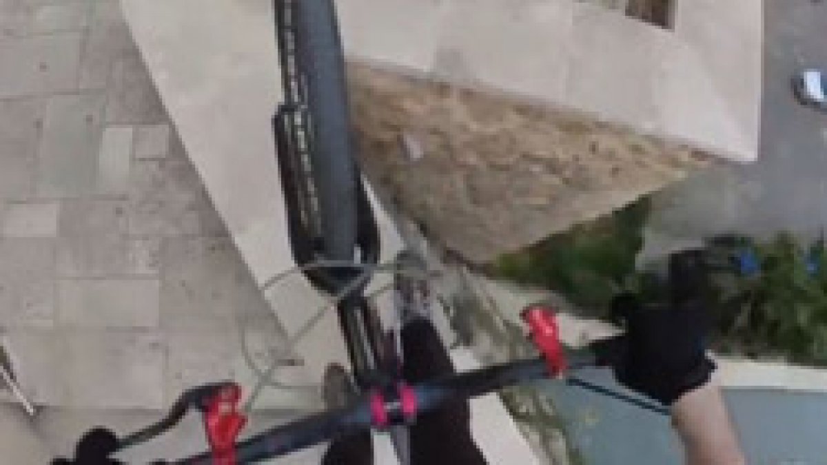 Gençlerin yaklaşık 30 metre yüksekliği bulunan surlar üzerinde yaptığı tehlikeli akrobasi hareketleri, görüntüleri izleyenlerin yüreklerini ağzına getirdi.