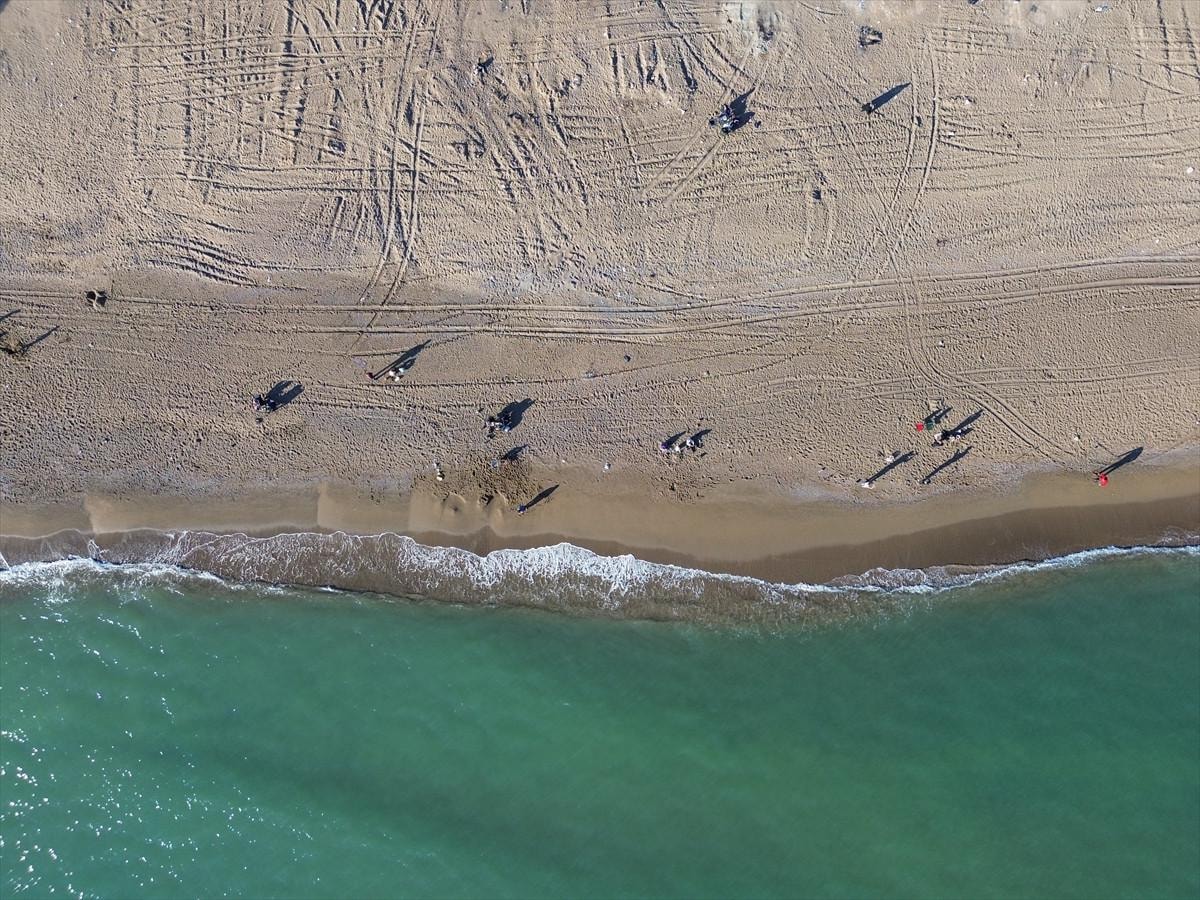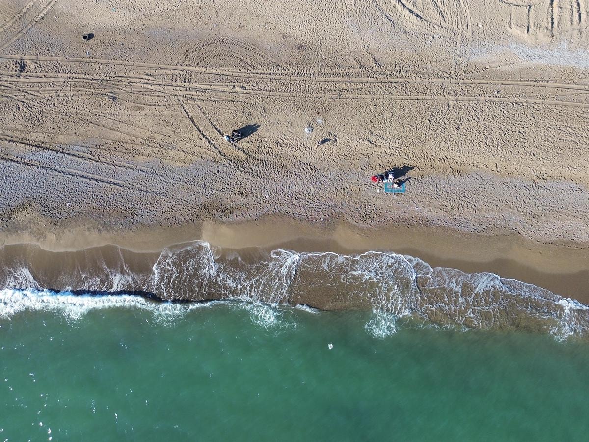Kumköy Sahili'ndeki hareketlilik, drone ile görüntülendi.