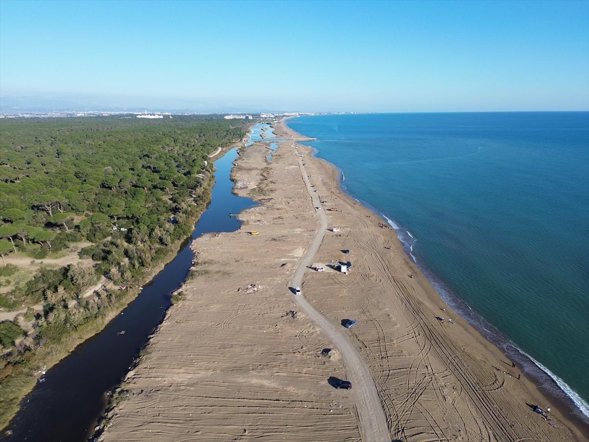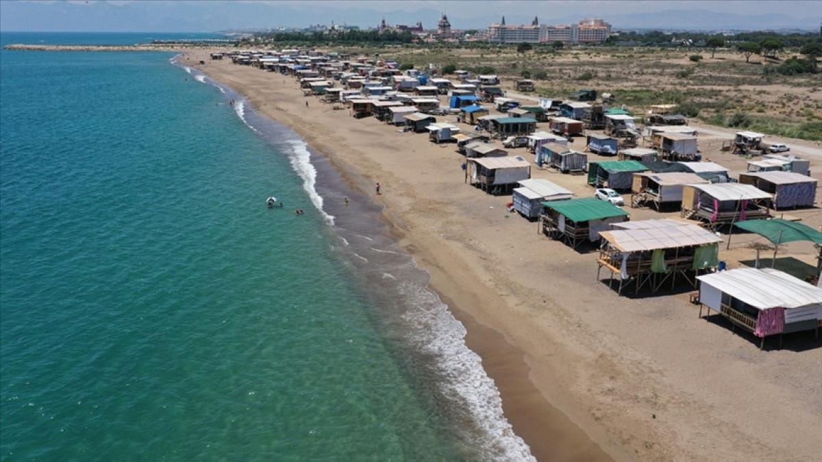 Antalya'nın Aksu ilçesindeki Kumköy Sahili, yaz aylarında tatil için kurulan çardakların yıkılmasının ardından temizlendi.