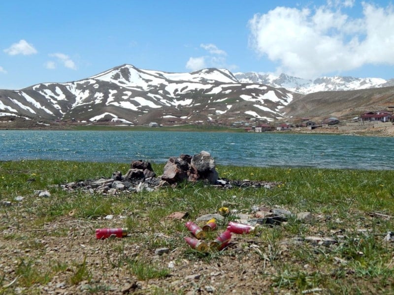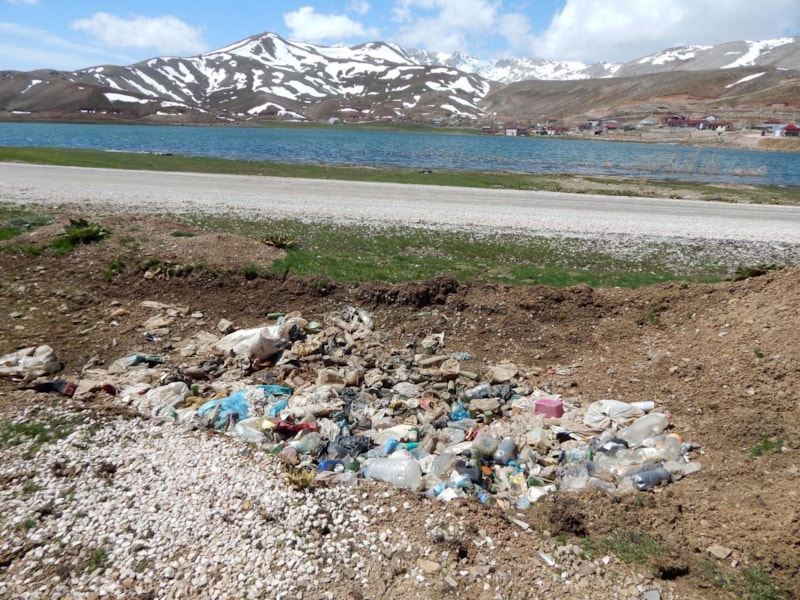 Kırmızı dağ laleleri, mor ve sarı çiğdemleri ve karlı dağlarıyla muhteşem manzaraların oluştuğu Eğrigöl'de, bu ilkbaharda açan rengarenk çiçeklerin yerini çöpler, mangal atıkları, drift yapanların toprağa zarar verdiği lastik izleri, tüfeklerden ateşlenen boş fişek atıkları aldı.