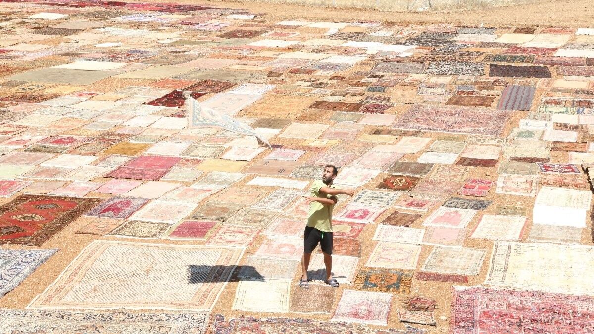 Güneş altında mikroplardan arınması ve renginin pastele dönüşmesi için tarlalara serilen el dokuması halılar, tablo gibi bir görüntü ortaya çıkardı.