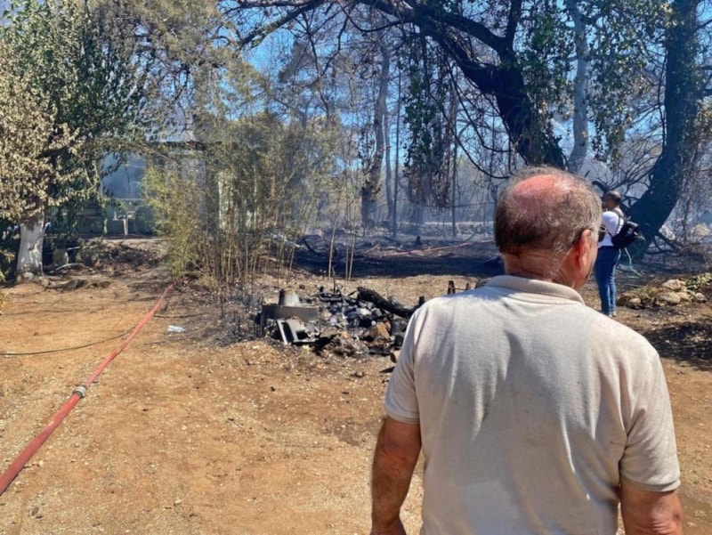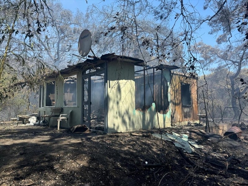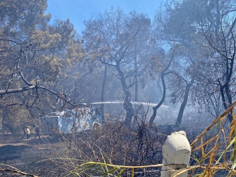Bu taraftan duman çıkıyordu, geldiğimde alevler evime doğru geliyordu. Hortumları çalıştırdım, alevler içinde kalınca eve sıçradı. Elimden gelen bütün müdahaleyi yaptım. Evimde zararım var. Daha sonra itfaiye, orman ekipleri geldi, işte bu hale geldi. Evde annem vardı ya. Allah'a şükür can kaybımız yok ama ormanlarımıza yazık, emeklere yazık. Emeklerimize yazık. Burası bir-iki yıl değil dile kolay burada 46 yıllık emek var. Bu bir değil, iki değil, üç değil. Ama bu böyle olmaz.