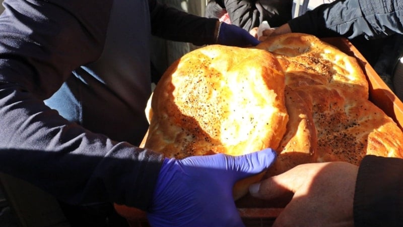Hayırseverin desteğiyle bir fırınla tanesi 20 TL’den anlaşma sağlanırken Ramazan ayının ilk iftarında pideler, muhtarlık önünde vatandaşlara ulaştırıldı.