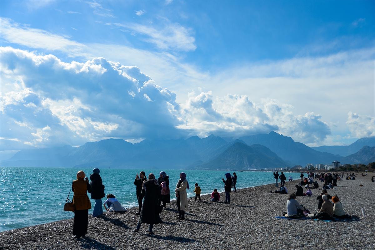 Antalya'da havanın 17, deniz suyu sıcaklığının 18 derece ölçüldüğü kentte, fırtına ve yağışların ardından hafta sonu güneş yüzünü gösterdi.