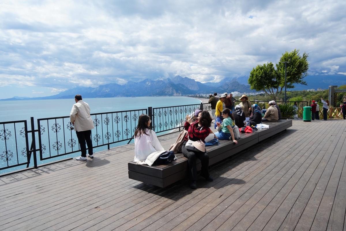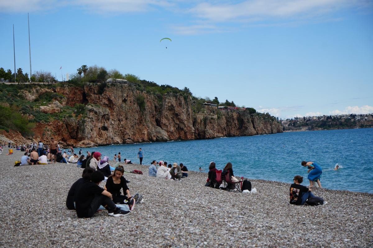 Antalya, güneşin yüzünü göstermesiyle bayram tatilcilerine yazdan kalma bir gün sundu.