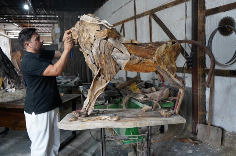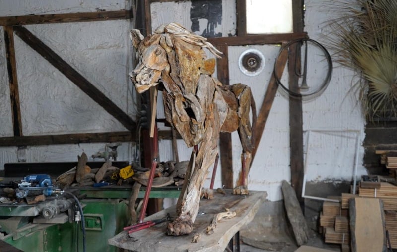 Osman Dönmez, doğadan topladığı ağaç parçalarını bu kez aslan Zeus için birleştirdi.