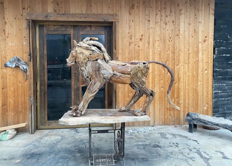 Driftwood (geri dönüşüm) sanatçısı Osman Dönmez, doğadan topladığı ağaç parçalarıyla Manavgat'ta kafesinden kaçtıktan sonra bir kişiyi yaralayan ve vurularak öldürülen aslan Zeus'un heykelini yaptı.