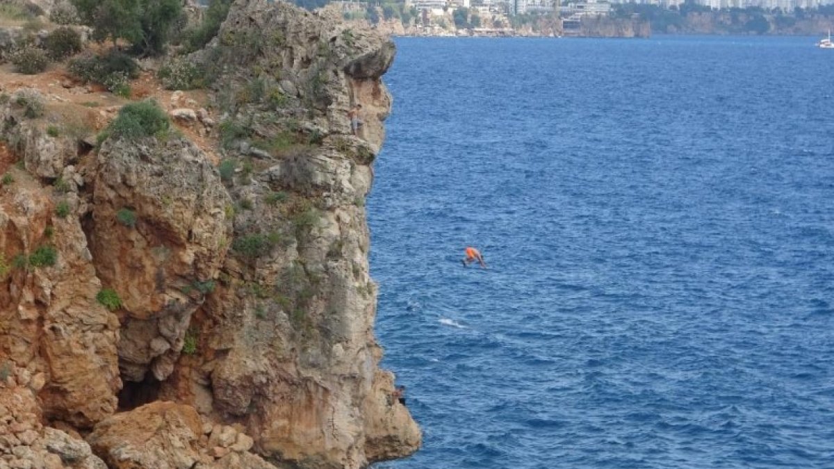 Antalya'da iki genç, 30 metrelik falezlerden denize atladı ViDEO