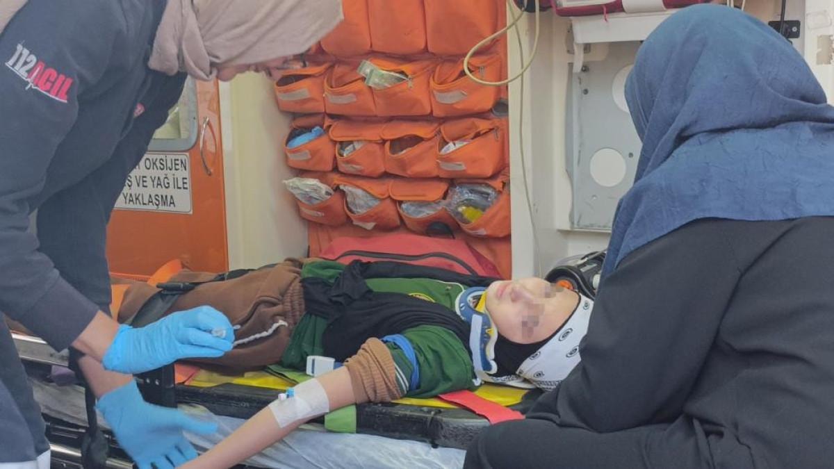 Kazada yaralanan ilkokul öğrencisi, sağlık ekibinin olay yerindeki müdahalesinin ardından ambulansla hastaneye kaldırıldı.