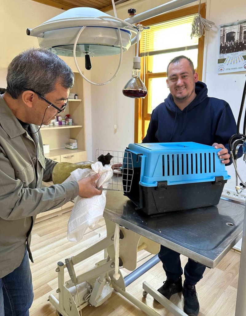 Serik ilçesinde girdiği iş yerindeki Mevlüt Aslan'ın koluna yapışıp bırakmayan ebabil, veteriner müdahalesiyle ayrılıp, Doğa Koruma ekiplerine teslim edildi.