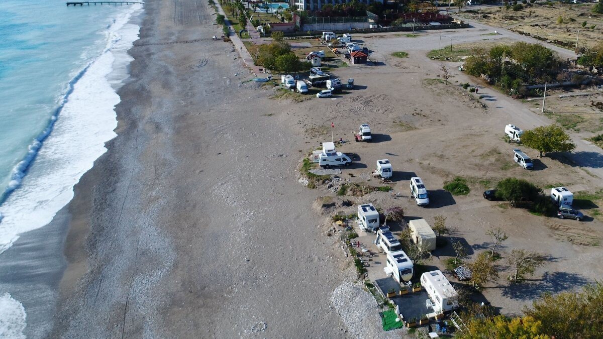 Antalya Kemer'e bağlı Çamyuva Mahallesi sahil kısmında ve 5 yıldızlı otellerin yanı başındaki günübirlik, denize sıfır alan Türkiye'nin birçok ilinden gelen karavancılarla doldu.