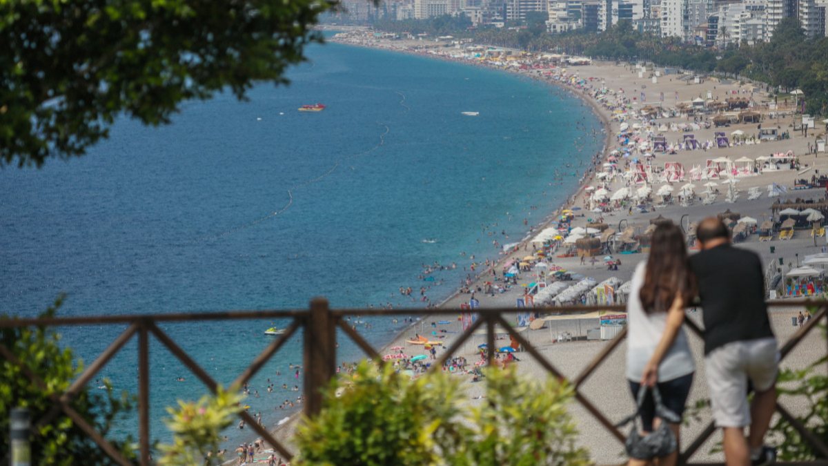 Kentin en ünlü plajlarından Konyaaltı, bayramın ilk günü kalabalık görüntüsüyle dikkat çekti.
