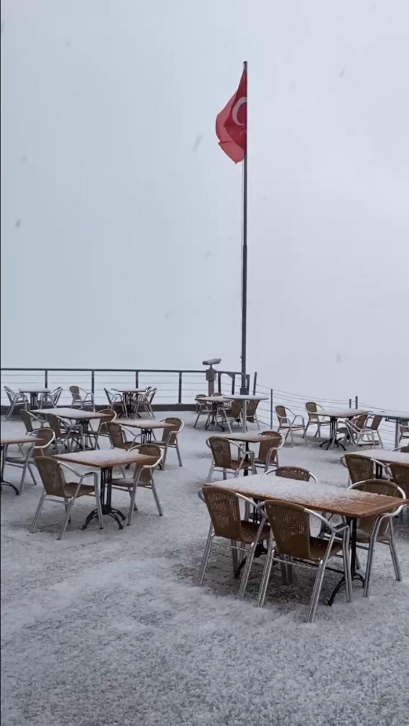 Saat 15.00 civarında ise kısa süreli kar yağışı etkili oldu. Hava sıcaklığının sıfır dereye kadar düştüğü belirtilen zirvede kar yağışı yaklaşık 15 dakika kadar sürdü.