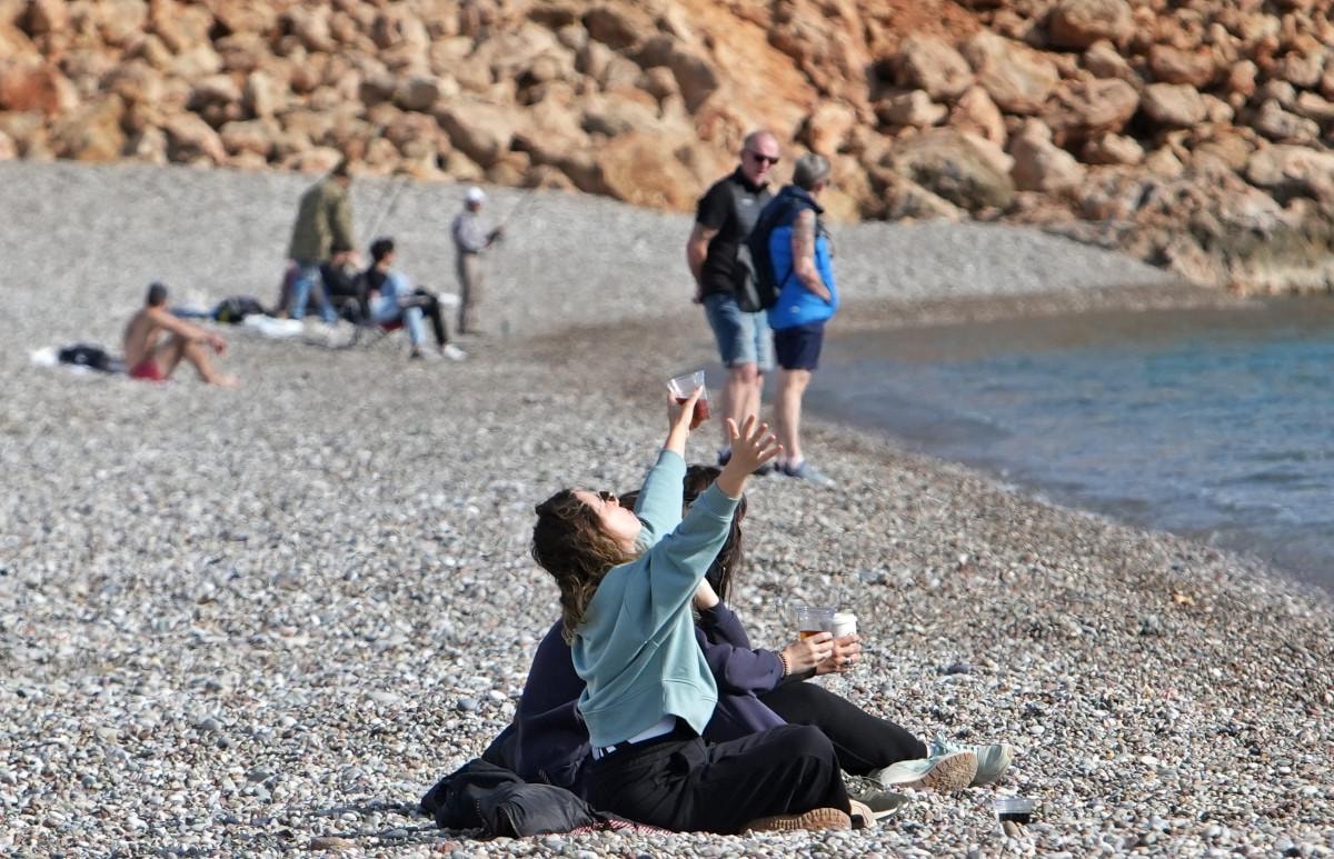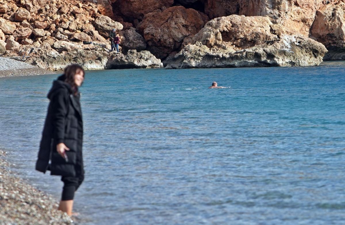 Tatilciler ve kent sakinleri kışlık montlarını giydi, bazıları ise Konyaaltı Sahili'ne inip 22 derece ölçülen deniz suyu sıcaklığında denize girdi, kimileri de ayaklarını denize soktu.
