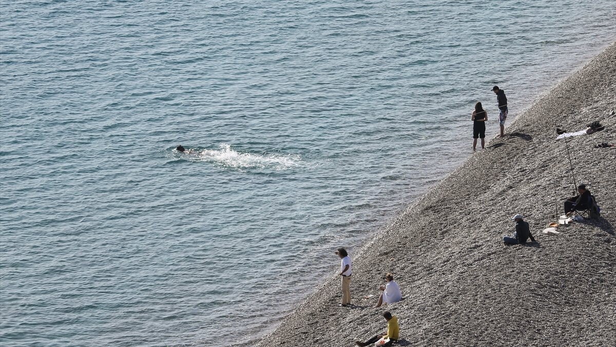 Antalya'da güneşli havayı fırsat bilenler, soluğu denizde aldı.