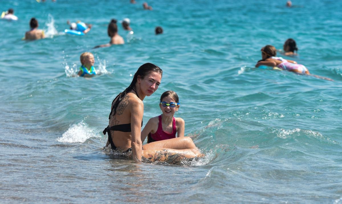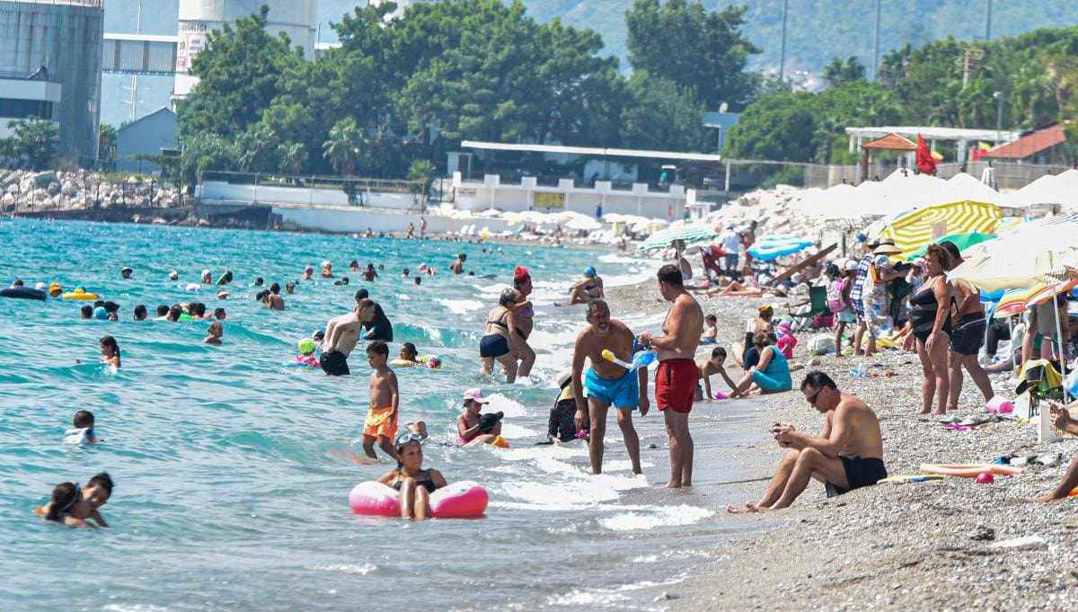 Tatilciler, sıcak havada denize girerek serinlemeyi tercih etti. Bazıları plaj şemsiyesi altında gölgede vakit geçirmeyi tercih etti.