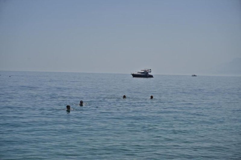 O anları yaşayanlardan Serkan Alptekin, “Hava çok sıcak, terledik. Kar manzarasıyla denize giriyor insanlar. Böyle bir havayı beklemiyorduk, şaşırdık. Yukarıda kar, aşağıda deniz keyfi” dedi.