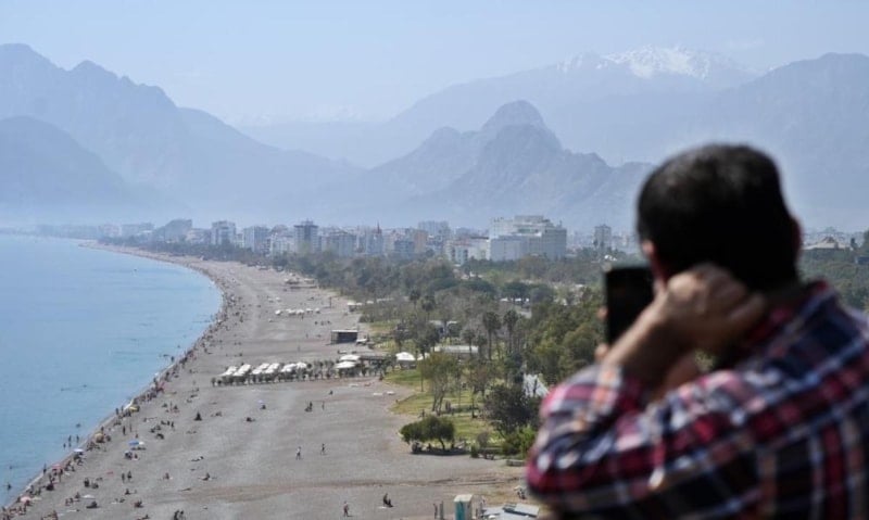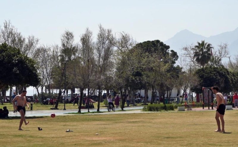 Nem oranının %67 olduğu şehirde, sıcaktan bunalan yerliler ve turistler, dünyaca ünlü Konyaaltı Sahili'ne akın etti.