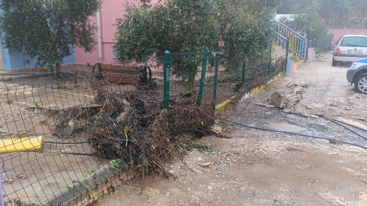 Manavgat'ta ise, sağanak yağışla birlikte oluşan sel suları, drenajın tıkanması nedeniyle Dolbazlar İlköğretim Okulu bahçesinin istinat duvarını yıktı.