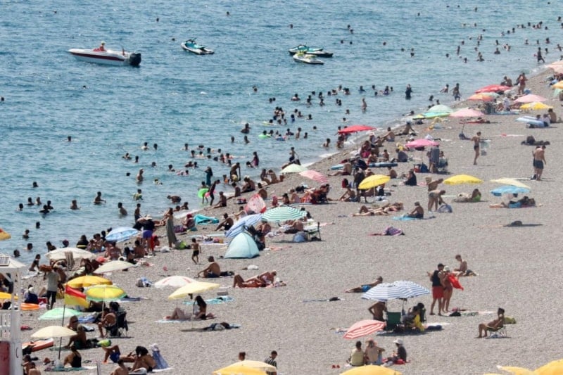 Hava sıcaklığının 35 derece nem oranının ise yüzde 60'a ulaştığı kentte, yerli ve yabancı tatilciler Konyaaltı Sahili'nde denizin keyfini çıkardı.