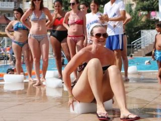 Kestel Bölgesi'nde bulunan bir otel yöneticileri, havuzu dolduran yaklaşık 250 turist suya atılan buz kalıplarıyla serinletildi. Büyük buz kalıplarının yerleştirildiği havuz başında yarışma yapıldı.