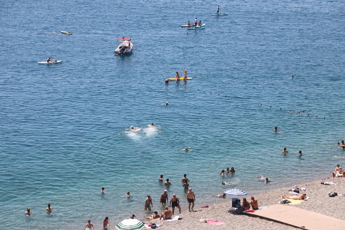 Konyaaltı Sahili'nde bazıları plaj şemsiyelerinin gölgesinde güneşten korunurken, kimileri park ve bahçelerde vakit geçirdi. Bazıları ise tehlikeli olmasına rağmen sahile yakın kayalıklardan atlayarak, denize girdi.