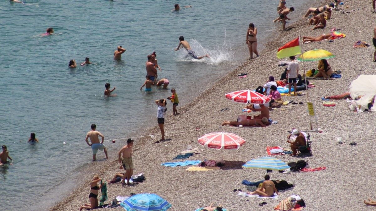 Antalya'da da hava sıcaklığının 33, deniz sıcaklığının ise 23 dereceyi görmesinin ardından yerli ve yabancı turistler Konyaaltı sahilinde yoğunluk oluşturdu.