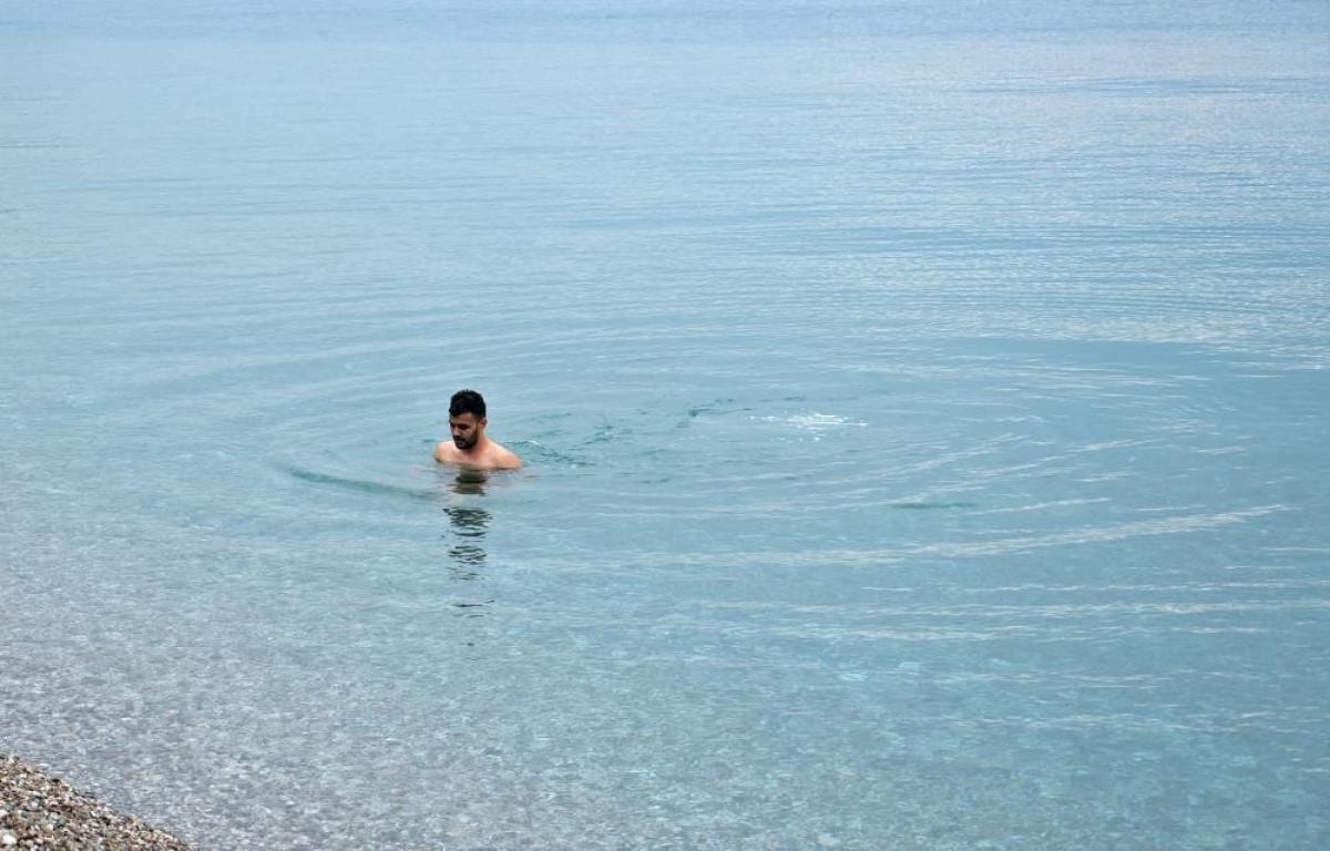 Kent sakini ve turistler, sıcaklığı 21 derece ölçülen denize girdi, bazıları ise balık tuttu.