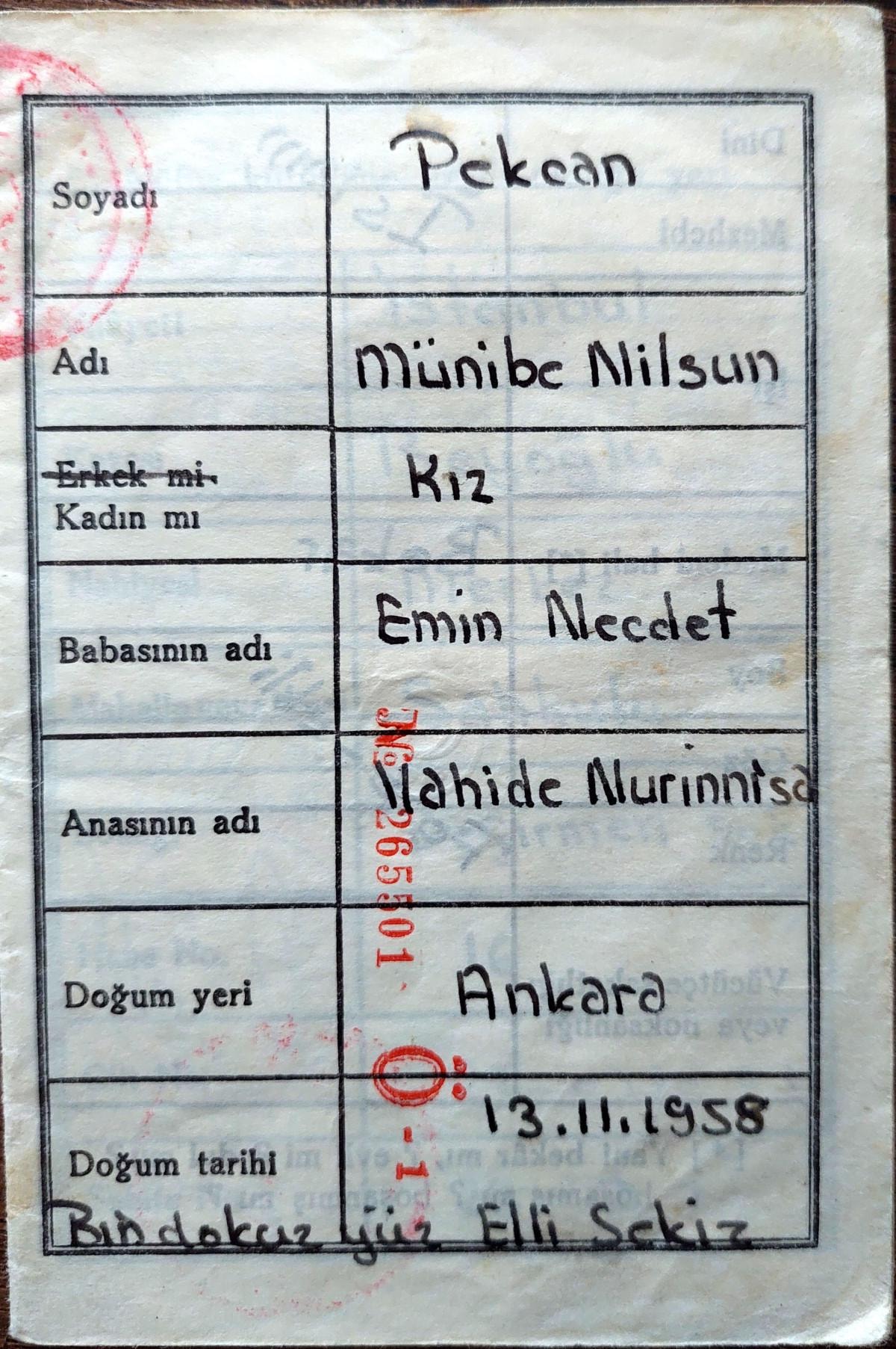 Annemin olduğu söylenen bir mezar var. Mezarın kaydında, annemin nüfustaki isminden 1 harf değişik 'Minibe Nilsun Pekcan' adı yazılı. Bana öz annemin öldüğünü söylüyorlar. Öldü mü yaşıyor mu, merak ediyorum. Benim adım, annemin adıyla babamın adının karışımı. Nüfus cüzdanımda annemin adının yazmasını istiyorum.