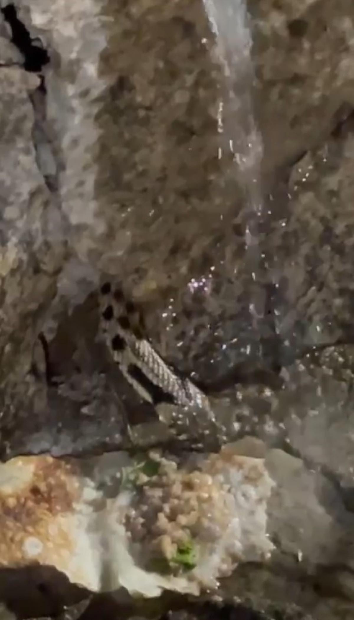 Vatandaşlar, avından olan yılanı ise gözleme ve suyla beslemeye çalıştı. Yuvasından çıkan yılan gözlemeyi yemezken, suyu ise kana kana içti.