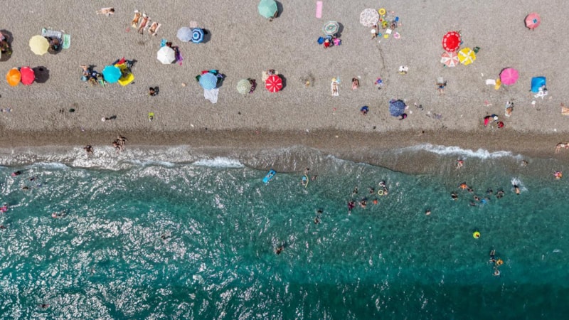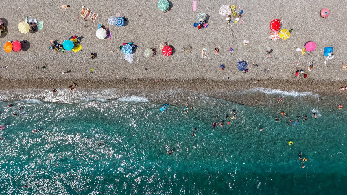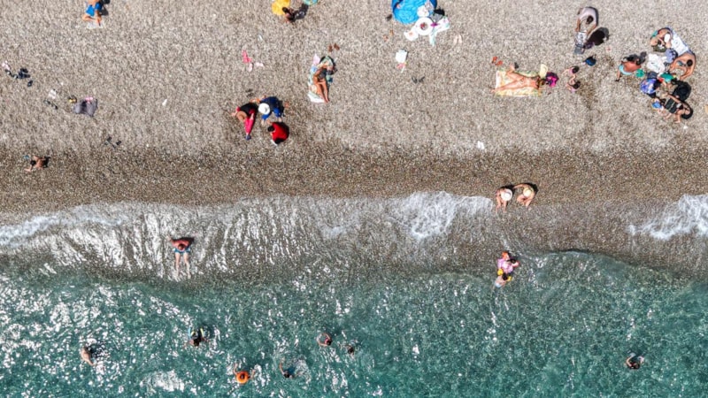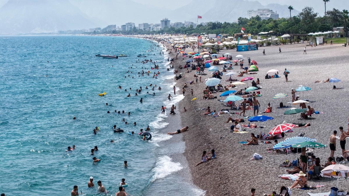 Antalya'da yüzde 76'ya ulaşan nemden ve yüksek sıcaklıktan bunalanlar sahilleri doldurdu.
