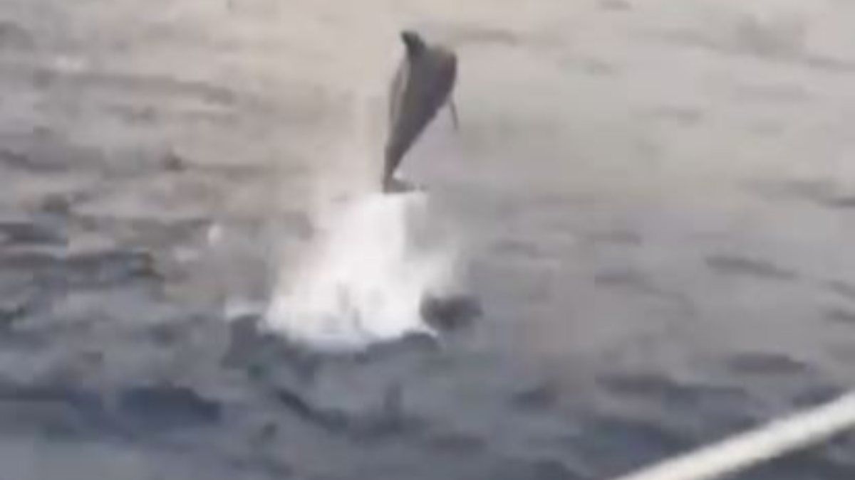 Antalya’da yunusun tekne ile yarışı VİDEO