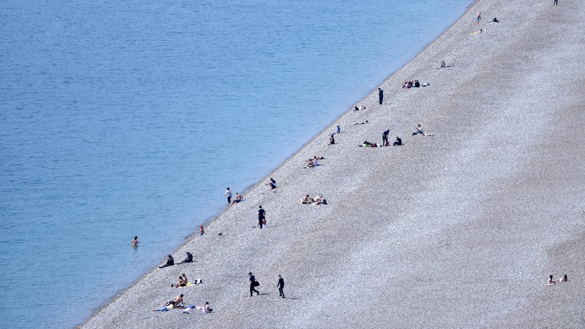 Sahilde yürüyüş yapan ve oturan çoğu kişinin ise maske takmadığı görüldü.