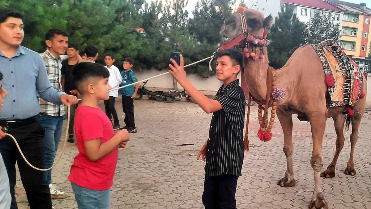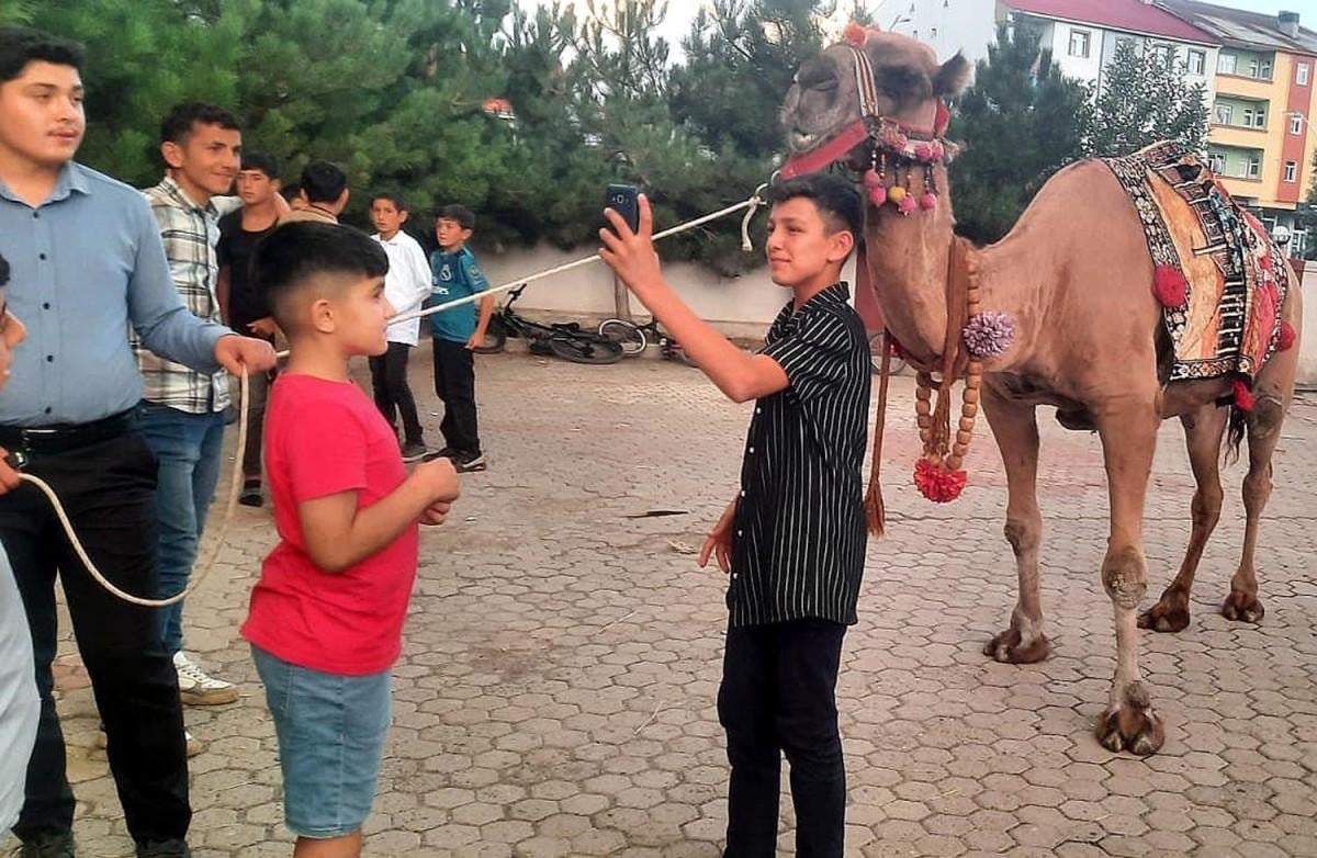İlçede yaşayan herkes onunla fotoğraf çektirmek için yarıştı. Kurban edilecek olan devenin etini Mevlit Kandili nedeniyle yurttaki öğrencilerle ilçe halkına ikram edeceğiz" diye konuştu.
