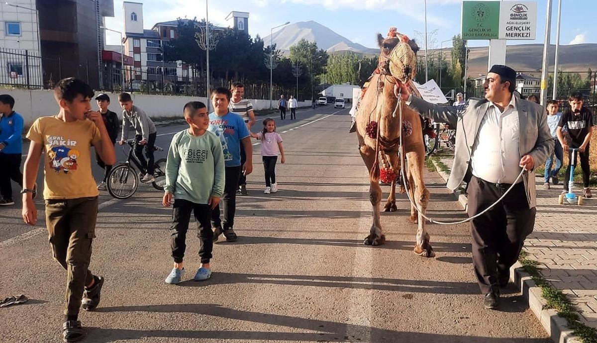 Özel Ali Kösem Erkek Öğrenci Yurdu Müdürü Mensur Nursever, devenin çarşamba günü Antalya'da satın alınan çiftlikteki görevliler tarafından Eleşkirt'e getirildiğini ve ilçede çoğu kişinin canlı olarak ilk kez deve gördüğünü söyledi.