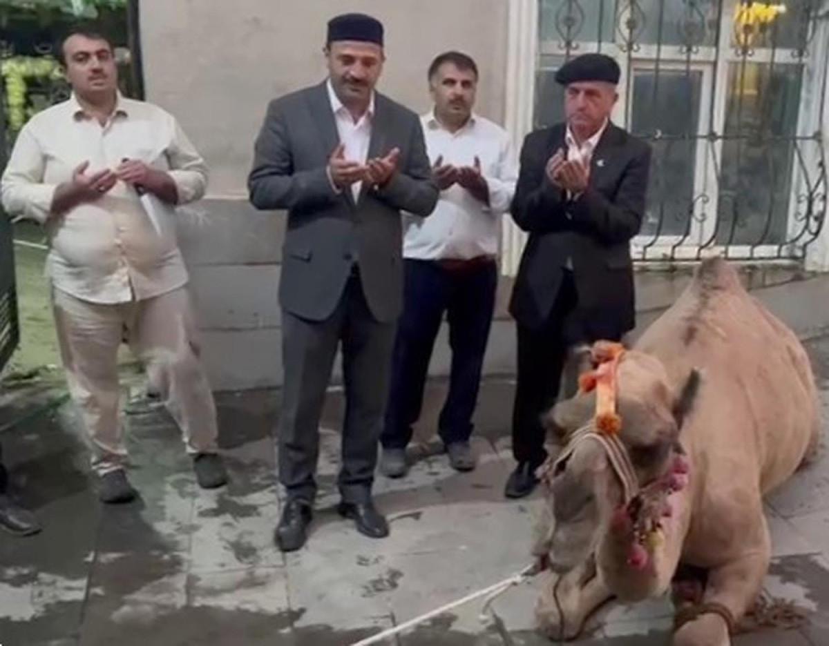 Oradan kendi araçlarımızla ve imkanlarımızla buraya getirdik. İlçede iki gün boyunca gezdirdik. Allah izin verirse sevgili peygamberimiz ruhaniyeti ve bütün Ümmet-i Muhammed'in ruhaniyeti, selameti, saadeti için kesiyoruz" dedi. Deve, sabah saatlerinde yurdun bahçesinde görevliler tarafından kurban edildi.