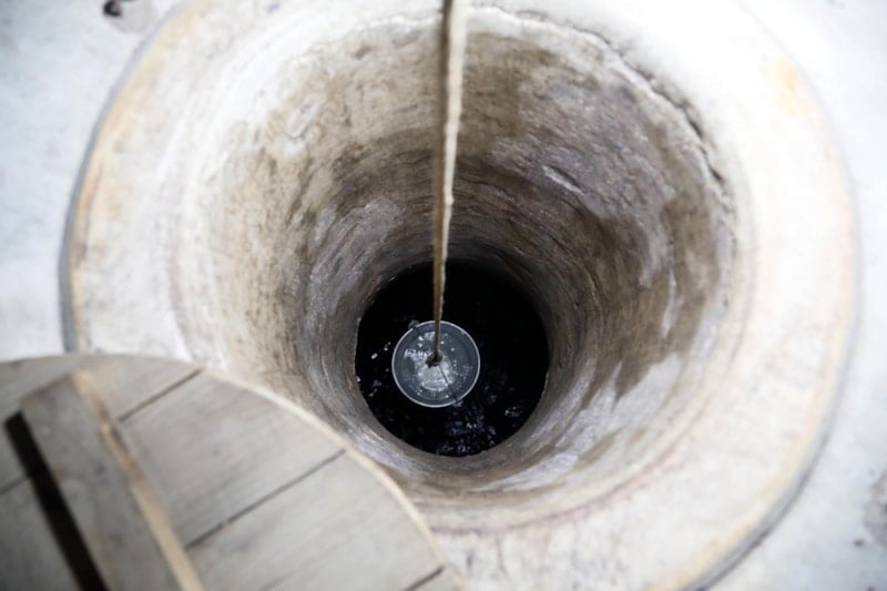 Çatı katında biriken yağmur suyu, oluklar sayesinde zemin katta bulunan 7 metre derinliğinde, 5 metre genişliğindeki sarnıca doluyor.