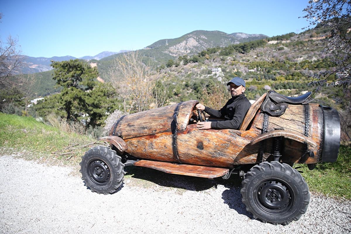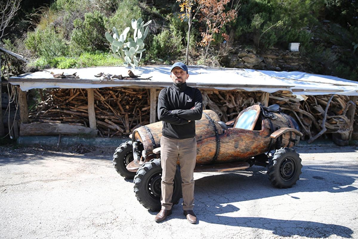 Antalya’nın Alanya ilçesinde marangozluk yapan Adem Say, doğaya ve ahşap sanatına duyduğu tutkuyu benzersiz bir projeyle taçlandırdı. Aile işletmesi olarak işlettiği yayla yolundaki restoranın bahçesinde, odun parçalarını sanat eserlerine dönüştürdüğü küçük bir atölye kurdu. Burada masa, sandalye, askılık, tepsi ve motosiklet gibi el işi ürünler yapan Say, en büyük hayali olan ahşaptan araba üretmeyi ise doğada rastladığı dev bir kütüğü işleyerek gerçekleştirdi.