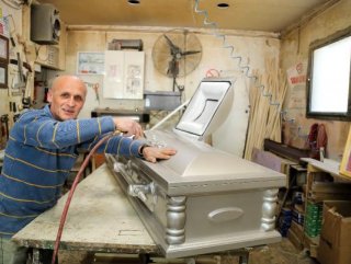 Antalya'da 30 yıllık mobilya ustası Ayhan İnce, 14 yıl önce Türkiye'de yabancılara yönelik üretimde eksikliği görerek tabut yapımına başladı.