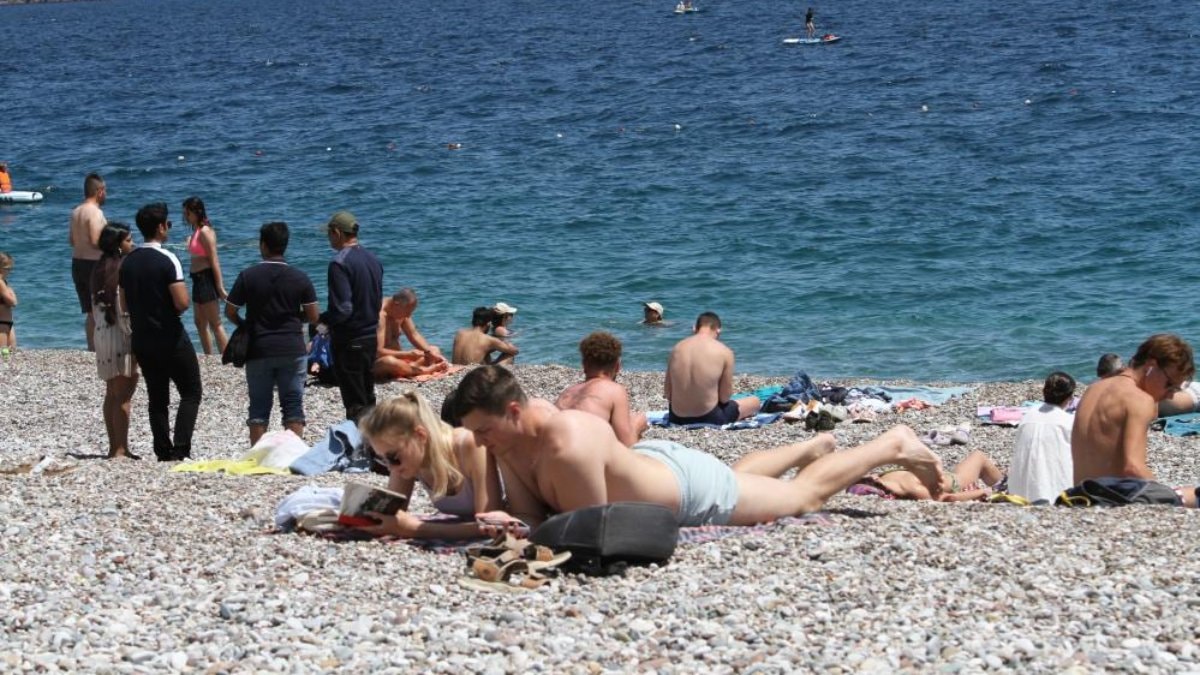 Sıcaklık arttı, Antalya sahilleri doldu