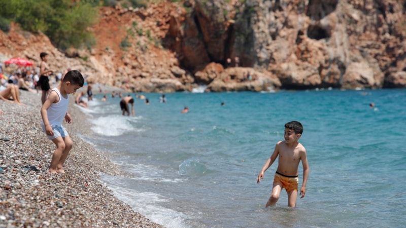 Hava sıcaklığının 21, deniz suyu sıcaklığının ise 20 derece olarak ölçüldüğü Antalya’da özellikle çocuklar Konyaaltı Sahili’nde serin suların tadını çıkardı.