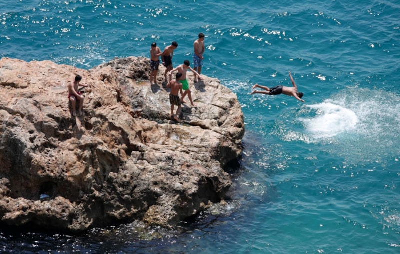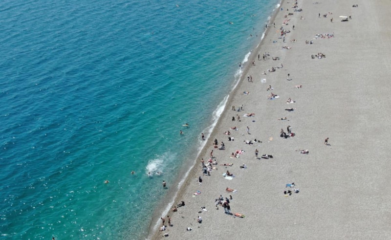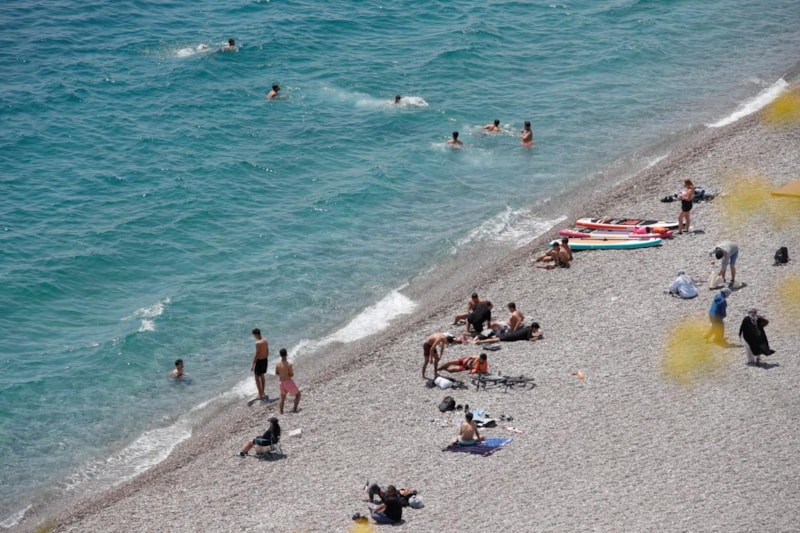 Antalya’da sıcak havayı fırsat bilenler, hafta sonunu Konyaaltı Sahili’nde denize girerek geçirdi.