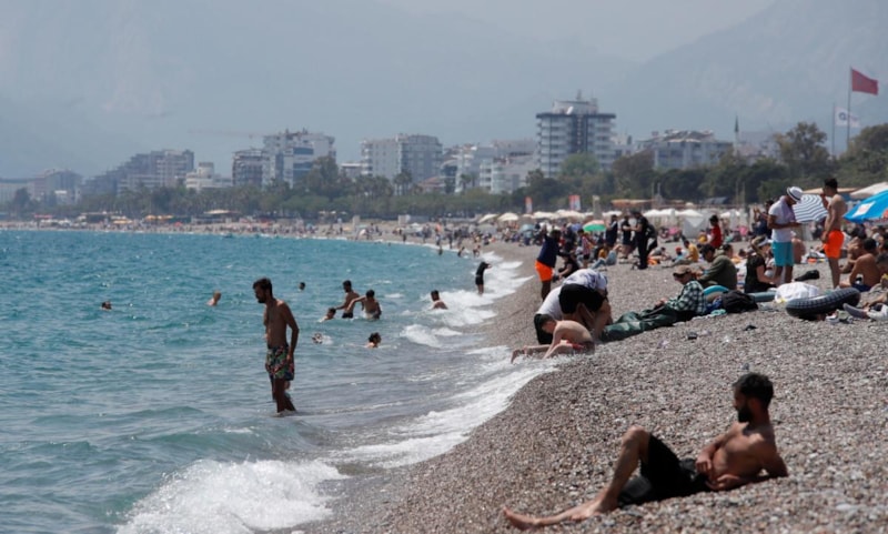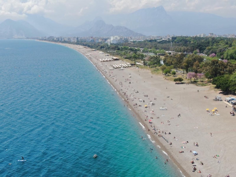 Havaların iyice ısınması ile birlikte Antalyalılar ve kente tatil amacıyla gelen yabancı turistler, Konyaaltı Sahili’ni doldurdu.
