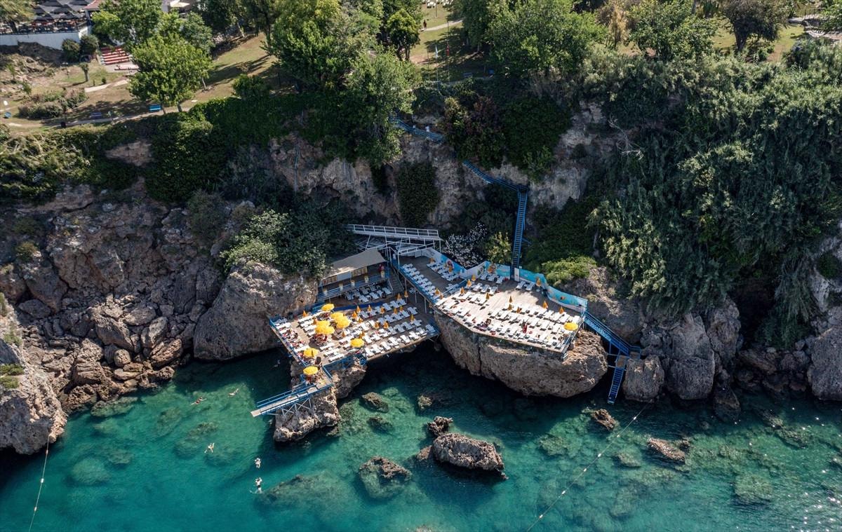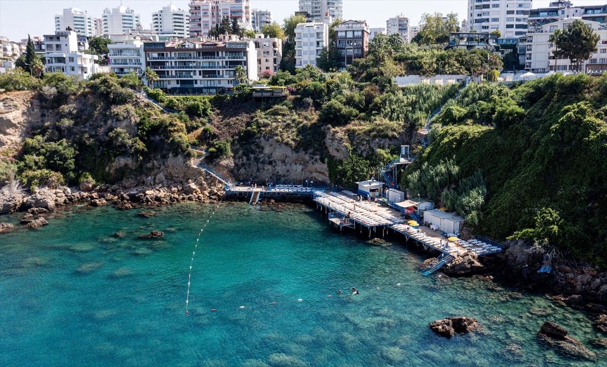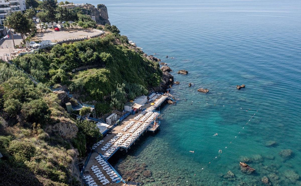 Falezlerin denizle birleştiği alanlara kadar kurulan merdiven ve asansörlerle ulaşılan plajlar dolup taşıyor.