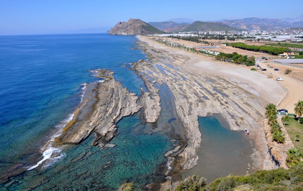 Gazipaşa'nın Koru Mahallesi'ndeki plajda doğal yollarla oluşan ve 'Yalıtaşı' adı verilen doğal havuzlar, ilgi odağı oldu.