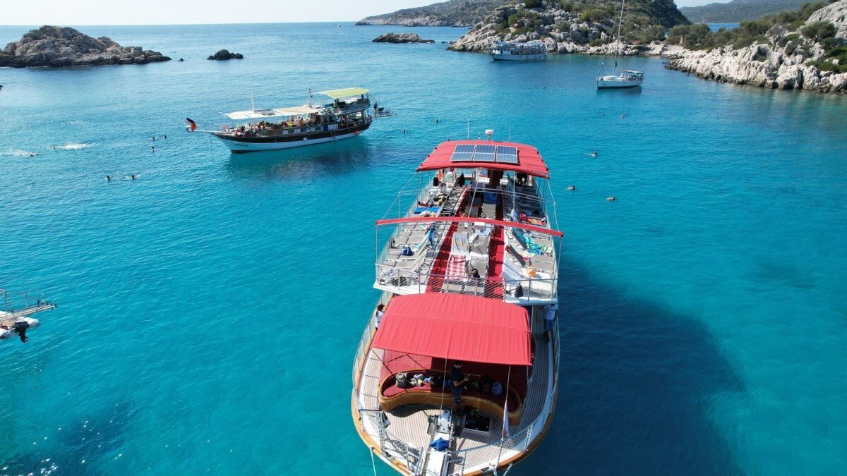 Gökkaya Koyu'na birçoğu lüks onlarca tekne demir atarken, Kekova Koyu'nda ise turistler yatlarda güneşlenerek denize girdi.