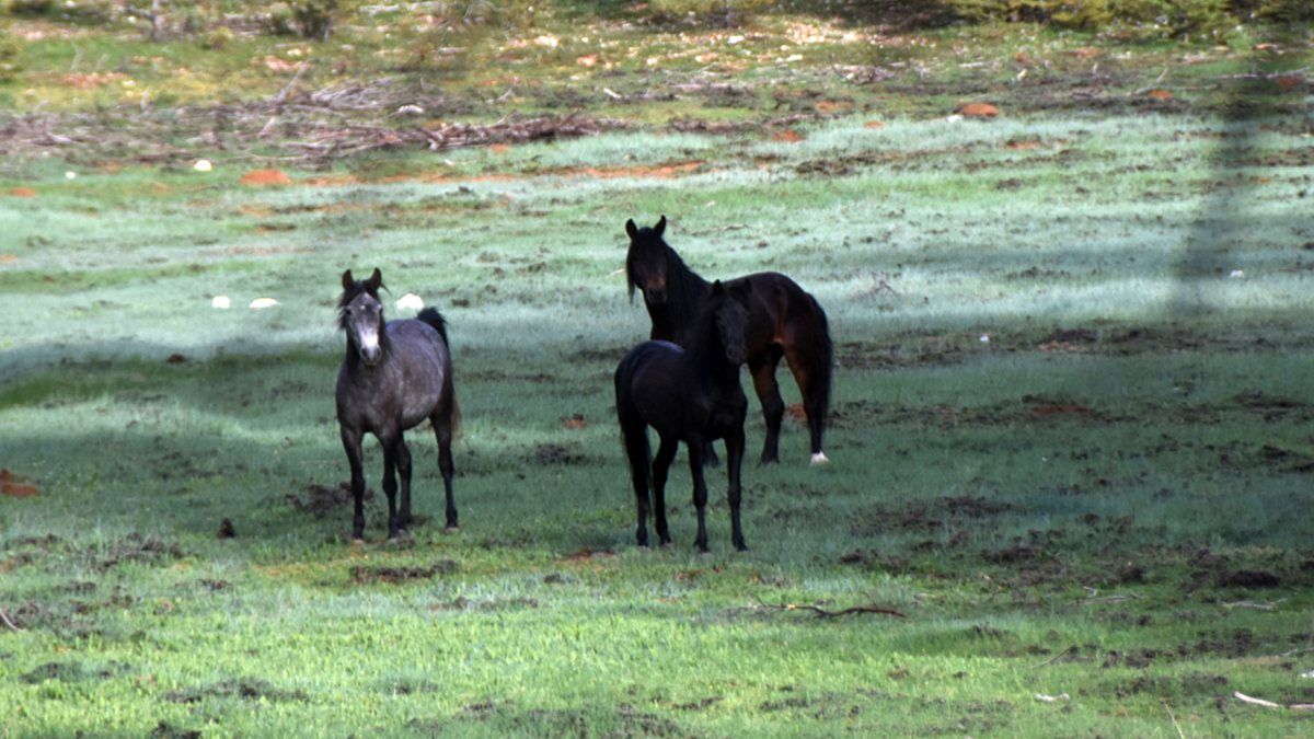 Yılkı atlarından 3'ü, Kaş'a bağlı Gürsu Mahallesi sınırlarındaki 1100 rakımlı Dalaklı mevkisinde, sedir ormanları arasındaki düz arazide görüldü.